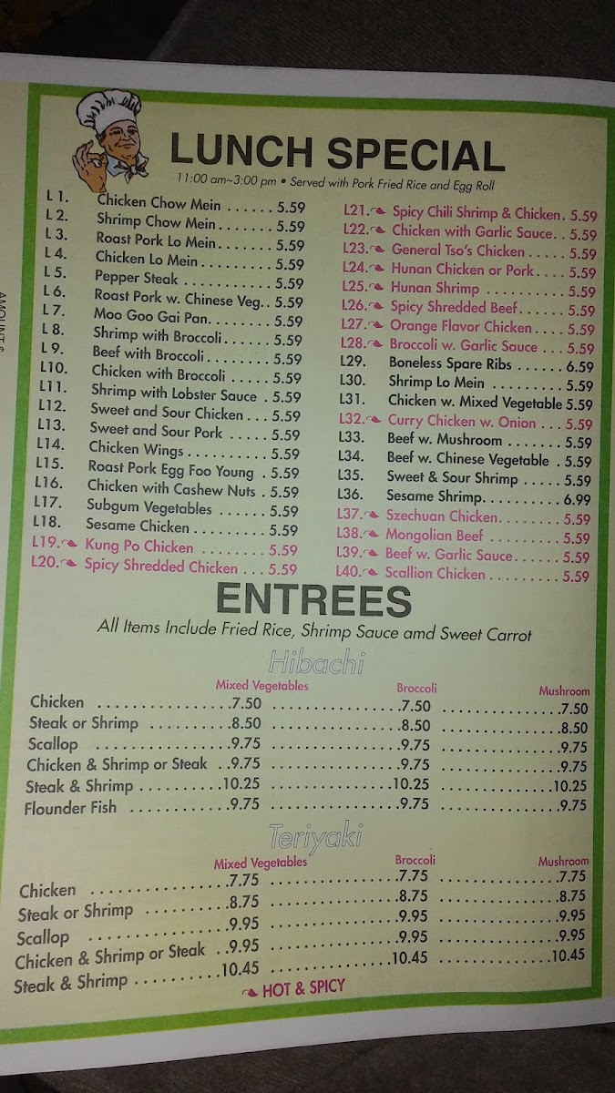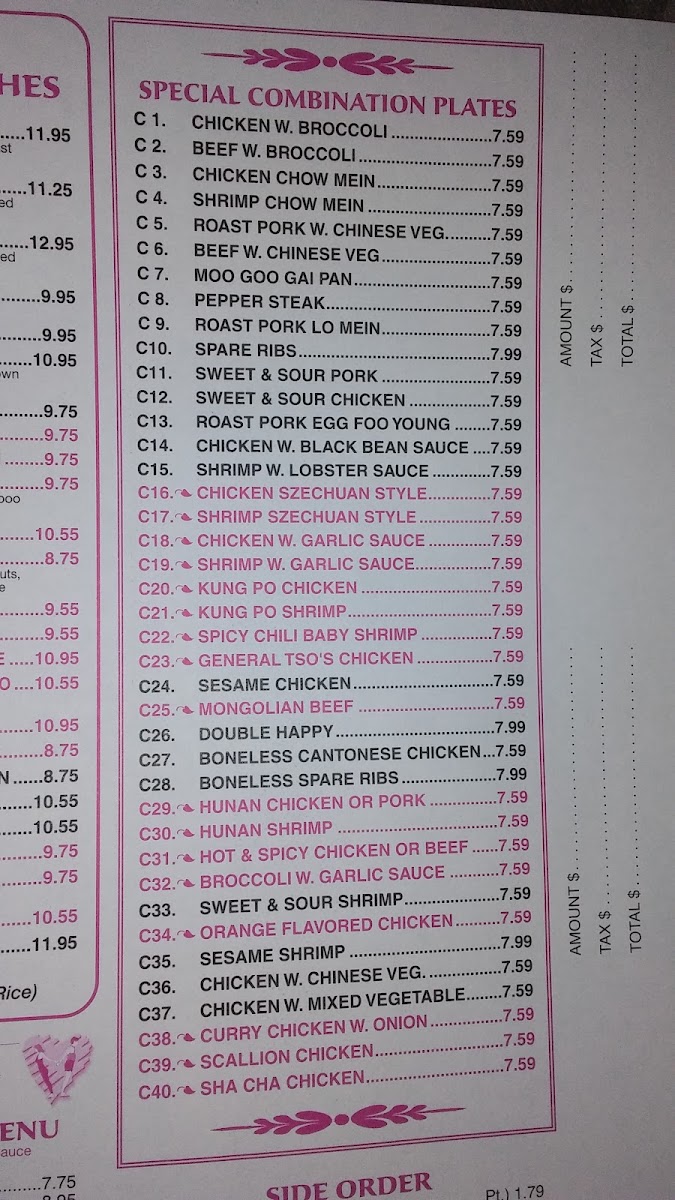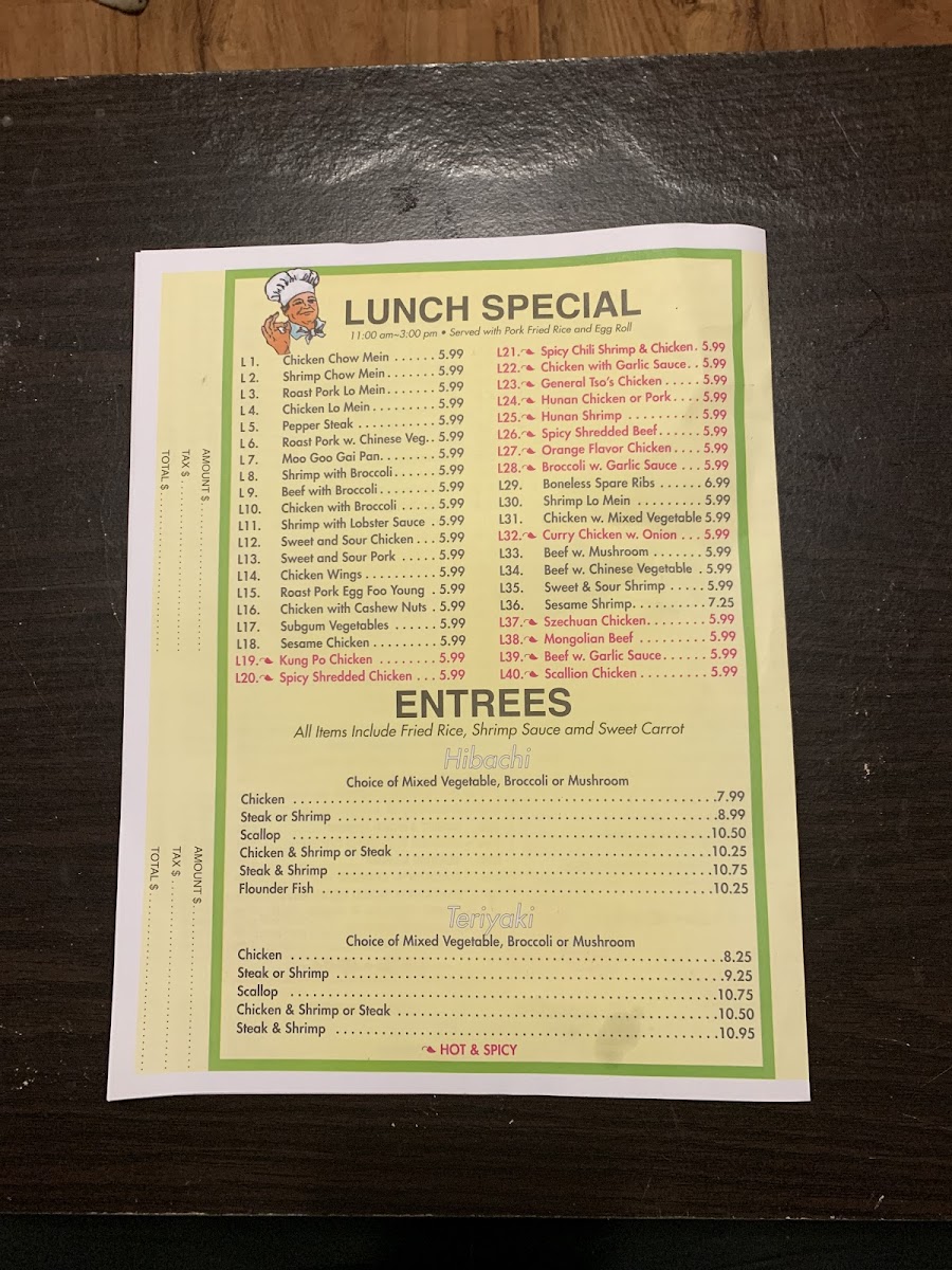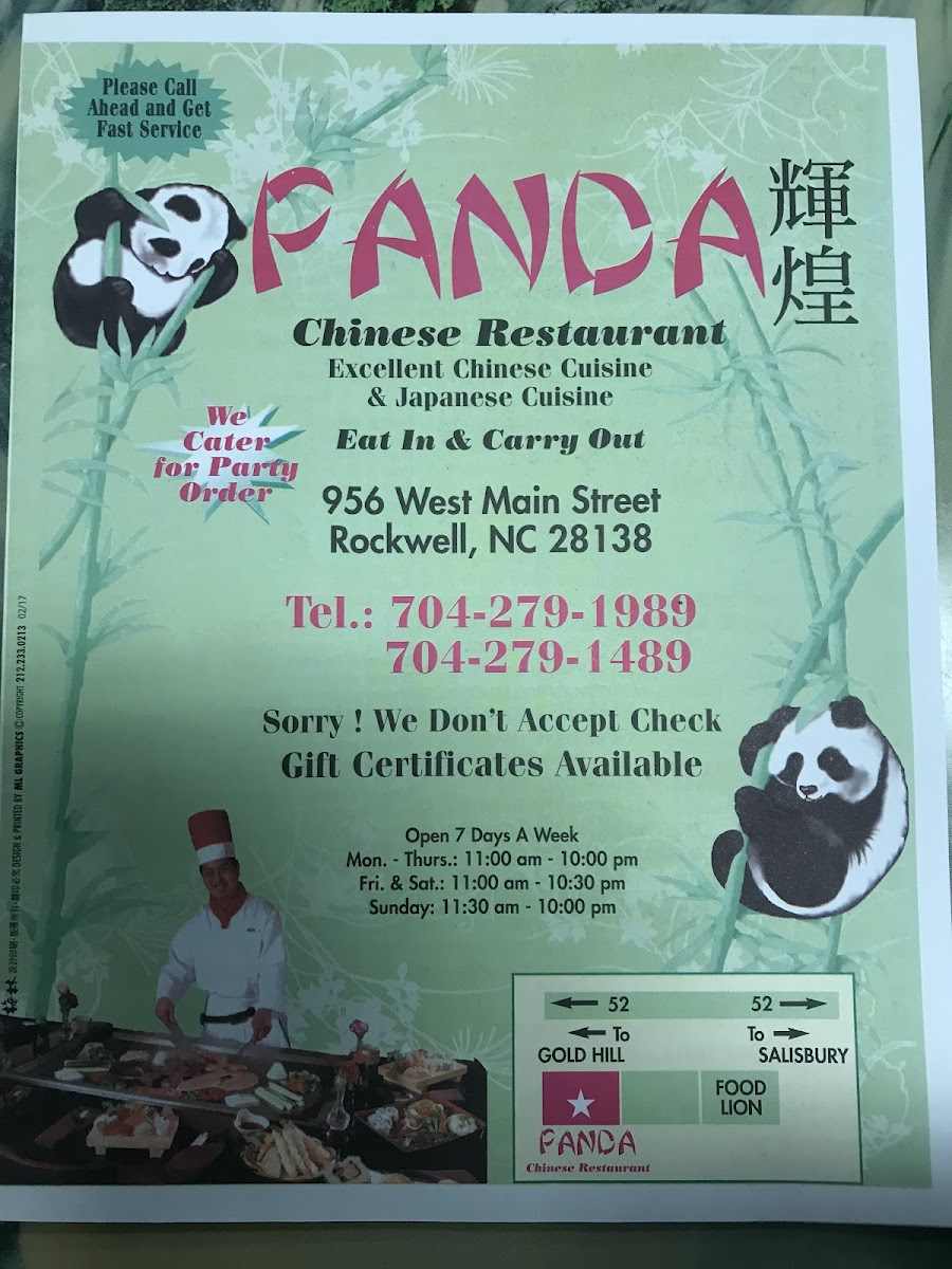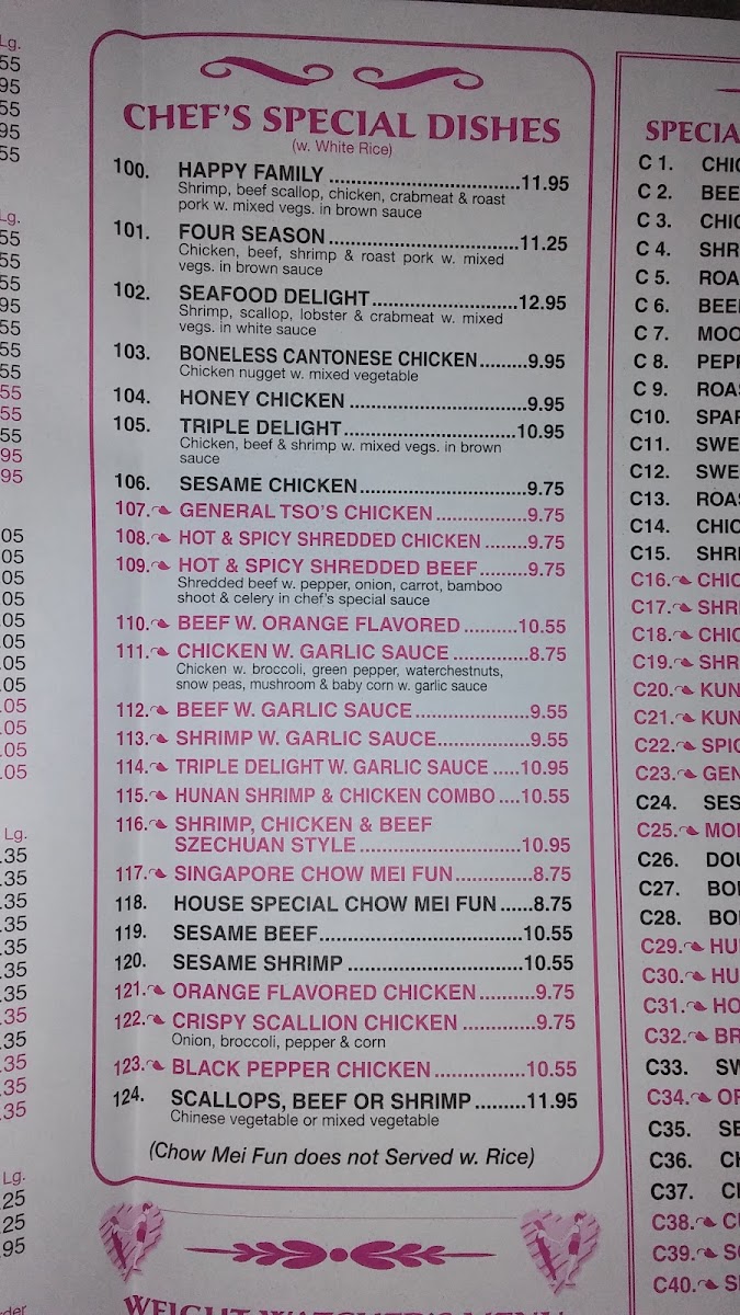 From a reviewer’s perspective, the menu at Panda Chinese Restaurant delivers a well-rounded and comforting overview of classic Chinese-American cuisine, making it easy to find something for every taste. Starting with Pork Egg Roll, Shrimp Egg Roll, Spring Roll, Shrimp Toasts, and Barbecue Spare Ribs, the appetizer selection sets a familiar and satisfying tone, while newer crowd-pleasers like Chicken Tenders, Fried Baby Shrimp, and Buffalo Wings add a casual, shareable twist. The soup options-such as Wonton Soup, Egg Drop Soup, Chicken Rice Soup, Chicken Noodle Soup, and House Special Soup-feel like dependable comfort choices, especially when paired with sides like White Rice, Crispy Noodles, Fortune Cookies, Shrimp Sauce, or General Tso's Sauce. Moving into the heart of the menu, staples like Vegetable Fried Rice, Chicken Fried Rice, Beef Fried Rice, and Shrimp Fried Rice, along with Vegetable Chow Mein, Chicken Chow Mein, and Shrimp Chow Mein, showcase the restaurant’s strength in traditional wok-style dishes. Noodle lovers are equally well served with Vegetable Lo Mein, Chicken Lo Mein, Beef Lo Mein, and Shrimp Lo Mein, while classics such as Egg Foo Young, Moo Shu Pork, Moo Shu Chicken, and Moo Shu Shrimp round out the experience. The variety continues through hearty entrées like Chicken with Broccoli, Beef with Broccoli, Shrimp with Snow Peas, and sweet favorites including Sweet and Sour Chicken, Sweet and Sour Pork, and Sweet and Sour Shrimp. For those seeking something more refined, chef-driven plates like Happy Family, Four Seasons, Seafood Delight, Boneless Cantonese Chicken, and Honey Chicken stand out, while lighter options from the Weight Watcher’s Menu and quick Lunch Specials ensure flexibility. Overall, the menu feels thoughtfully comprehensive-classic, approachable, and reliable-perfectly reflecting the kind of neighborhood Chinese restaurant you return to again and again.